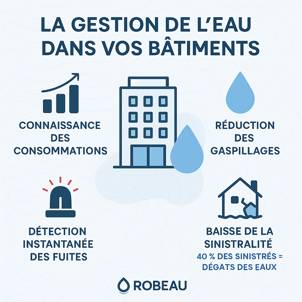 ROBEAU développe des solutions intelligentes de gestion de l’eau tous types de bâtiments, associant capteurs IoT, analyse de données temps réel et automatisation. Objectif : réduire les consommations, prévenir les fuites, sécuriser les installations et améliorer la performance environnementale